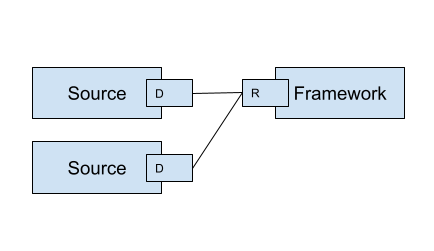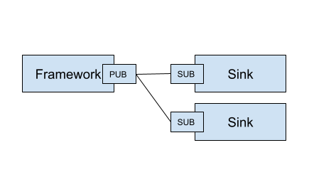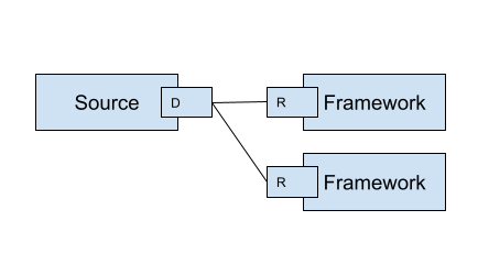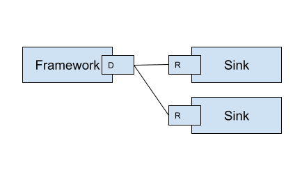 Module/BIND, Sink/CONNECT. This scheme is used widely. A module duplicates the same data to multiple sinks. A sink can filter out only required data.