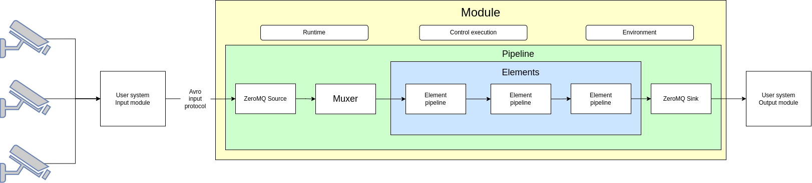 Pic 1 illustrates pipeline’s place within the module: the green box represents entire pipeline and the blue box highlights a user-defined parts that are generated based on the pipeline.elements section.
